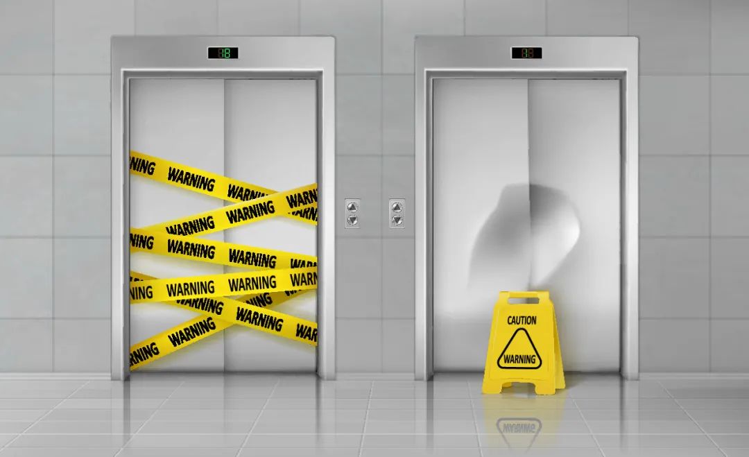 首先重点敬告!当被困电梯内时,不管是不是卡在两层之间,千万不要强行扒门!轿厢与井道边缘有一定间隙,初始规定是15厘米。但因为有人曾在事故发生时强行扒门,出现了被挤在夹缝中挣扎掉落的事故。现已将间隙距离改为10厘米。所以请谨记,强行扒门可能更易坠落电梯井,有致命危险。